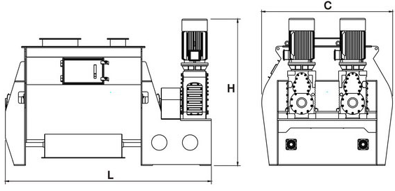 雙軸漿葉混合機裝有兩根反向旋轉的平行軸,裝有不同預設角度的漿葉。漿葉旋轉攪動物料的線速度超過零界轉速,致使物料能達到拋物線的Highest點,我們稱之為無重力點,所以我們又稱雙軸漿葉混合機為無重力混合機。